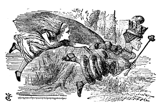 ‘O nee?’ zei de koningin op medelijdende toon. ‘Probeer het nog eens: